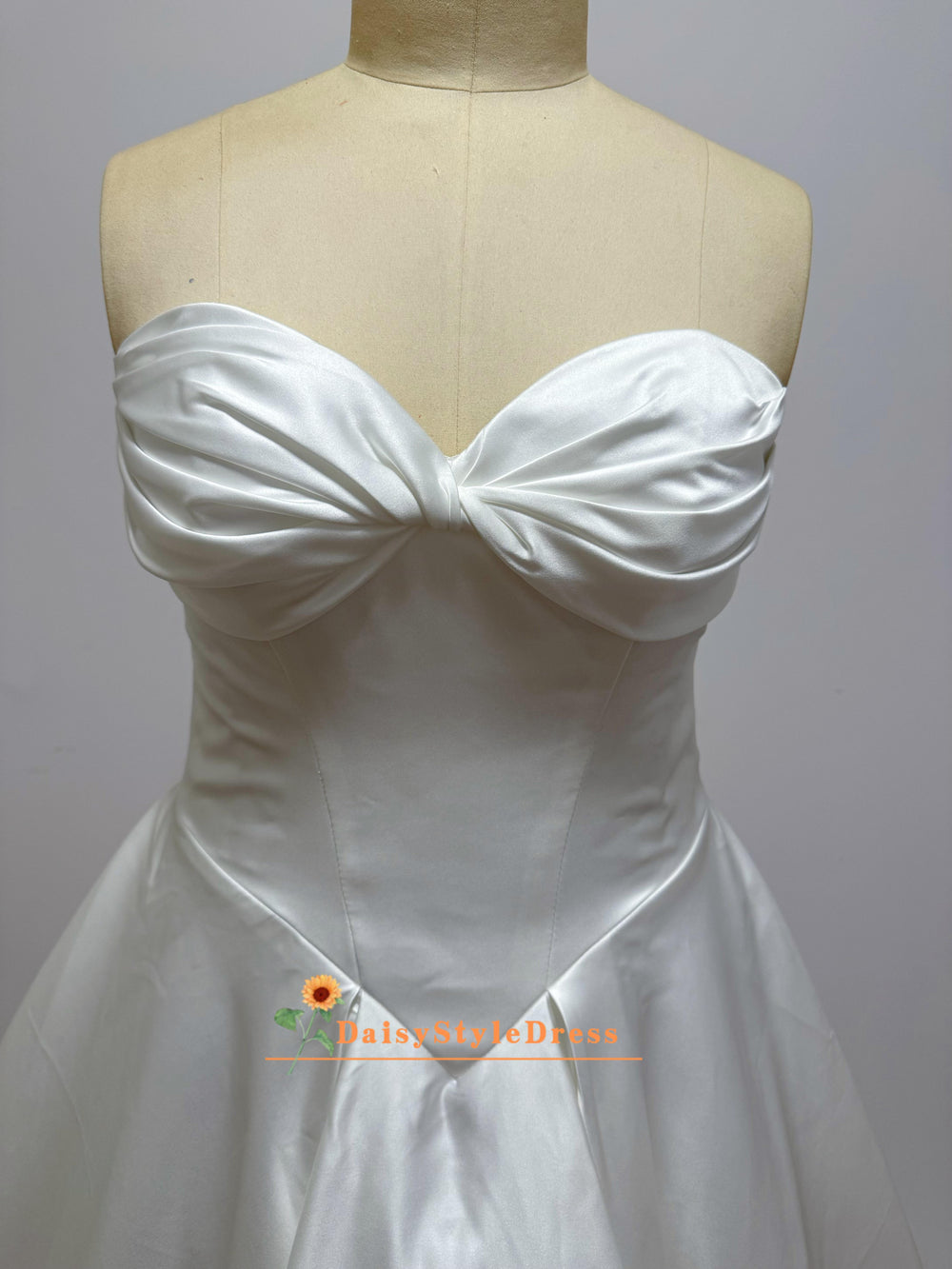 White Strapless Satin Ball Gown Wedding Dress With Train