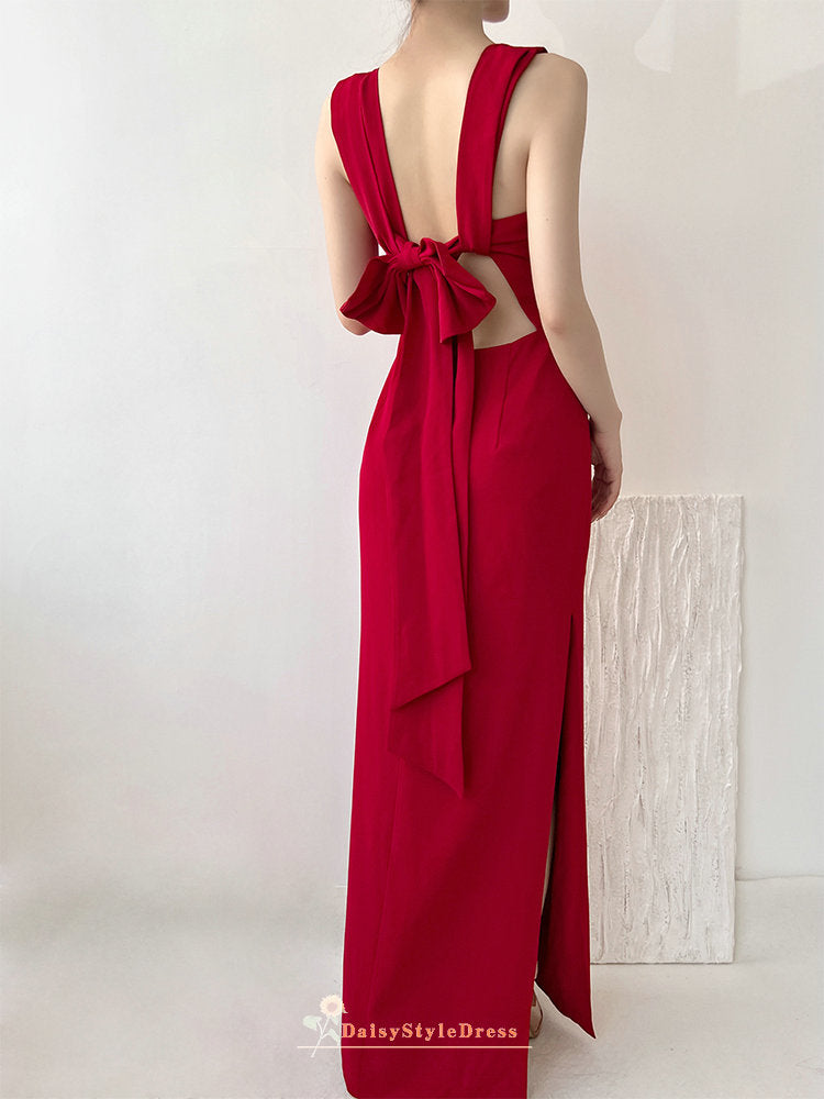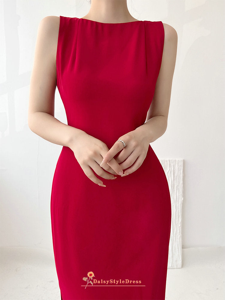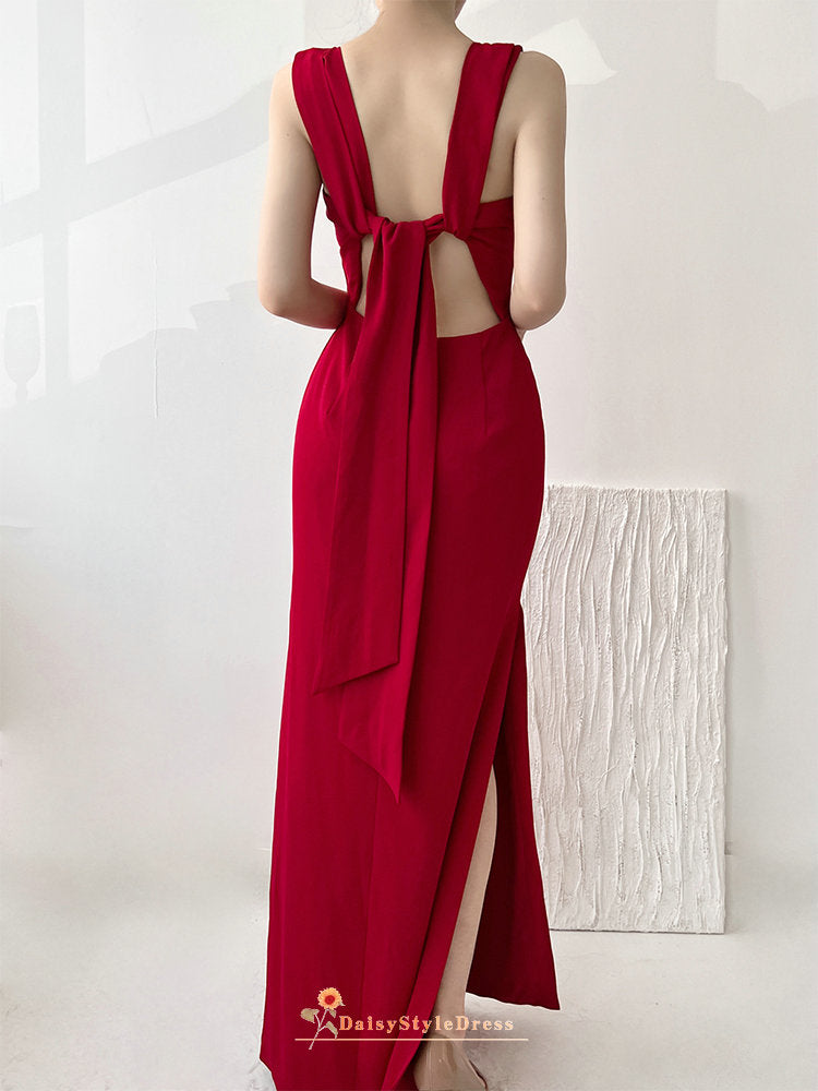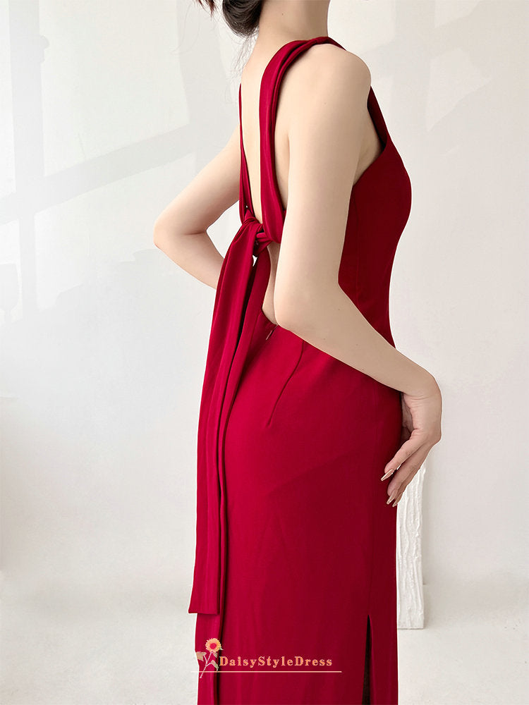 Sheath Side Slit Red Bridesmaid Dress