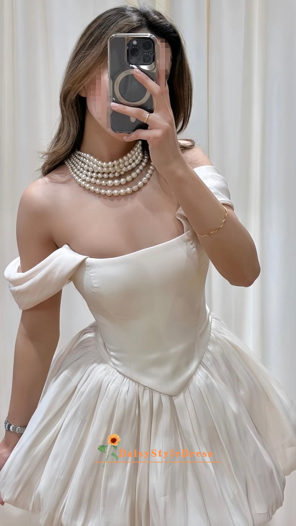 Off the Shoulder V-waistline Short Prom Dress