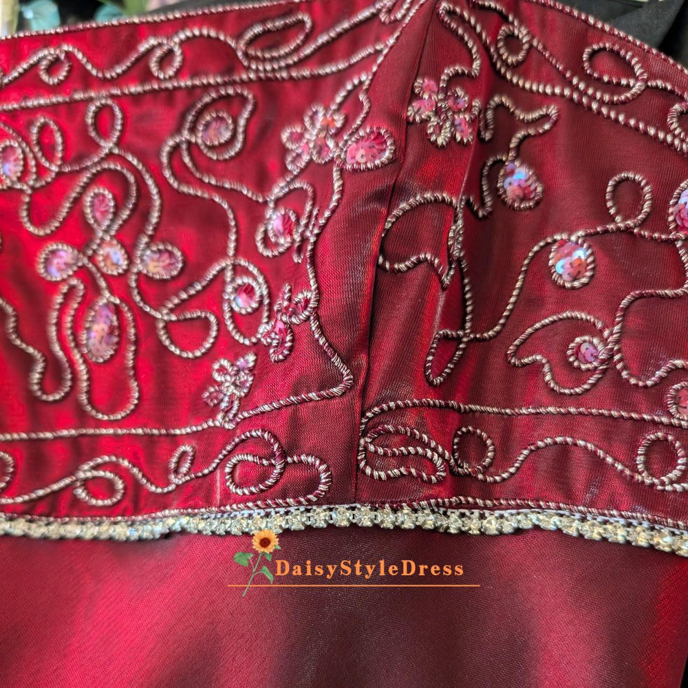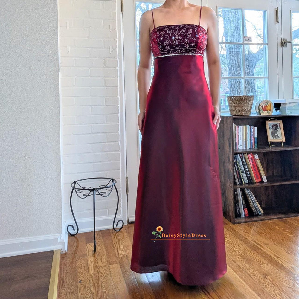 Beaded Burgundy Prom Dress,Satin Vintage Prom Dress