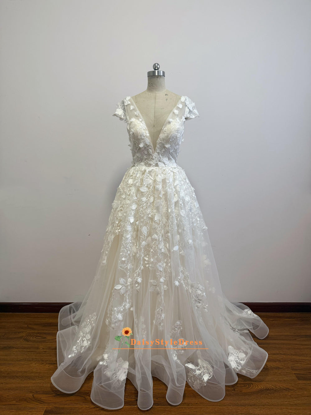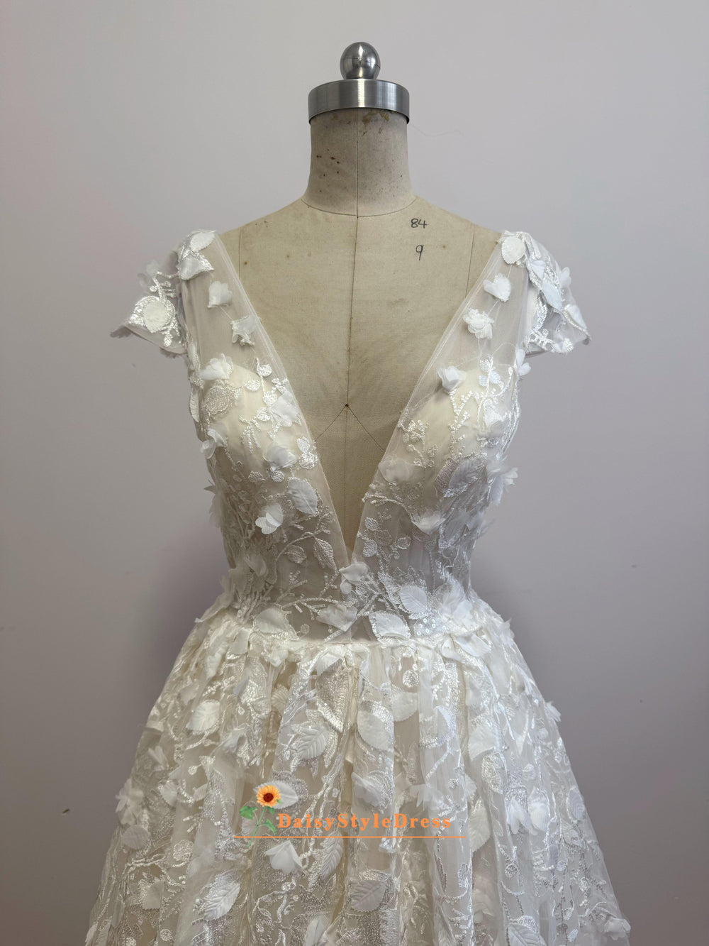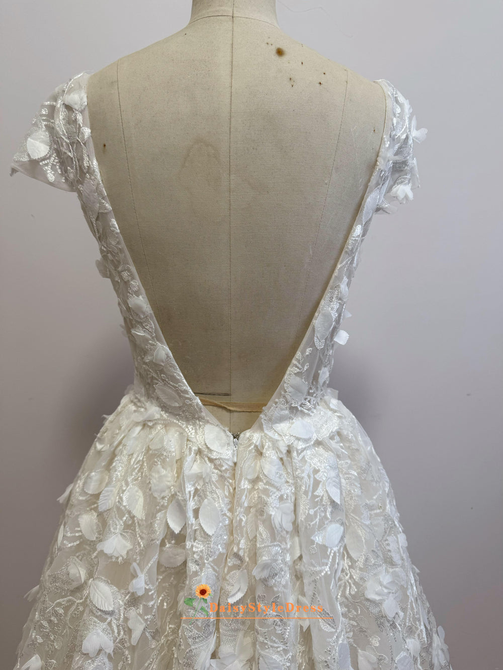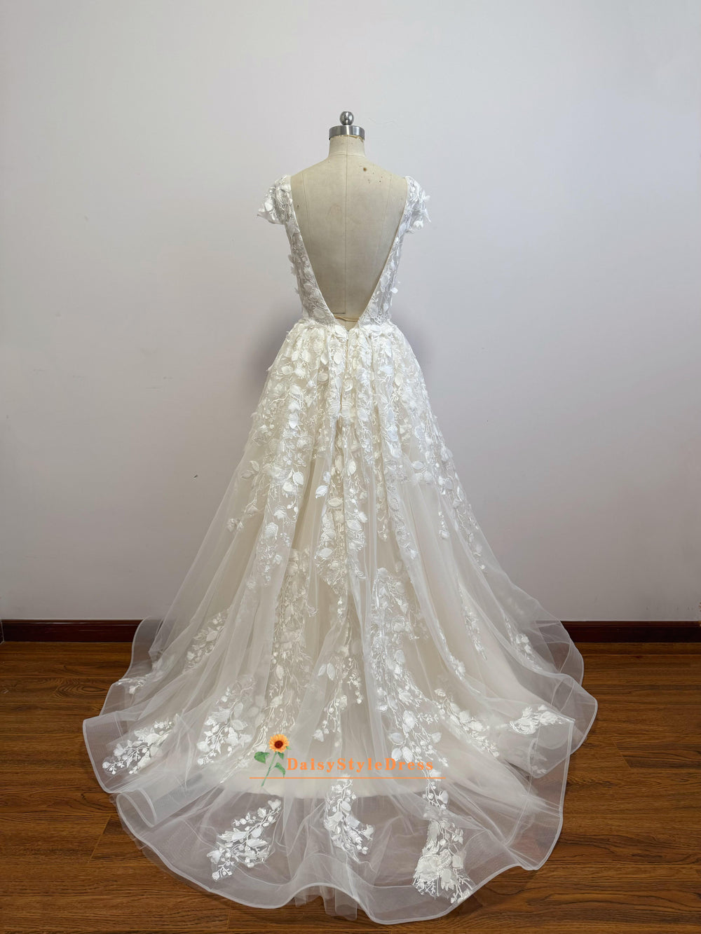 Ball Gown Low V Back Lace Summer Wedding Dress