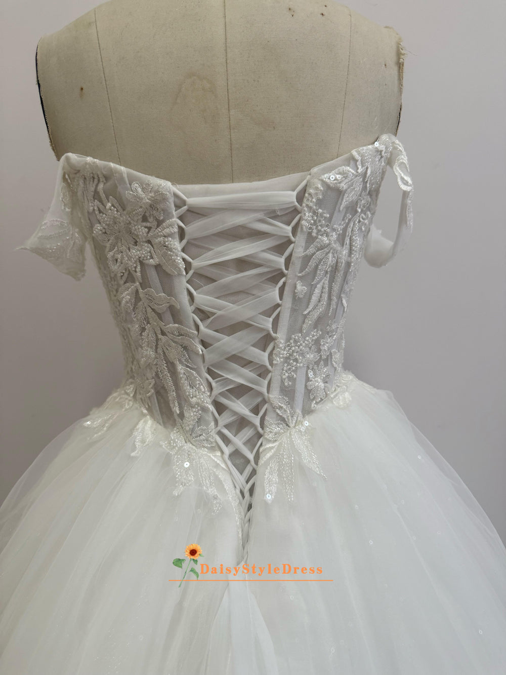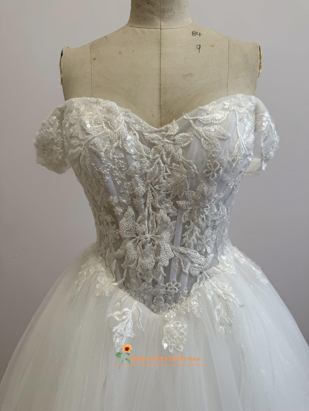 Ball Gown Off the Shoulder Lace And Tulle Wedding Dress
