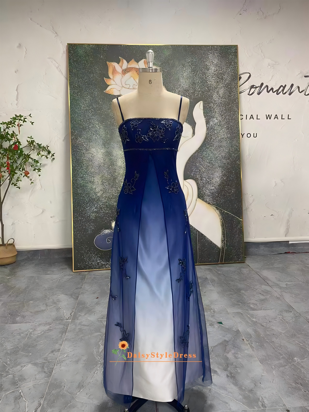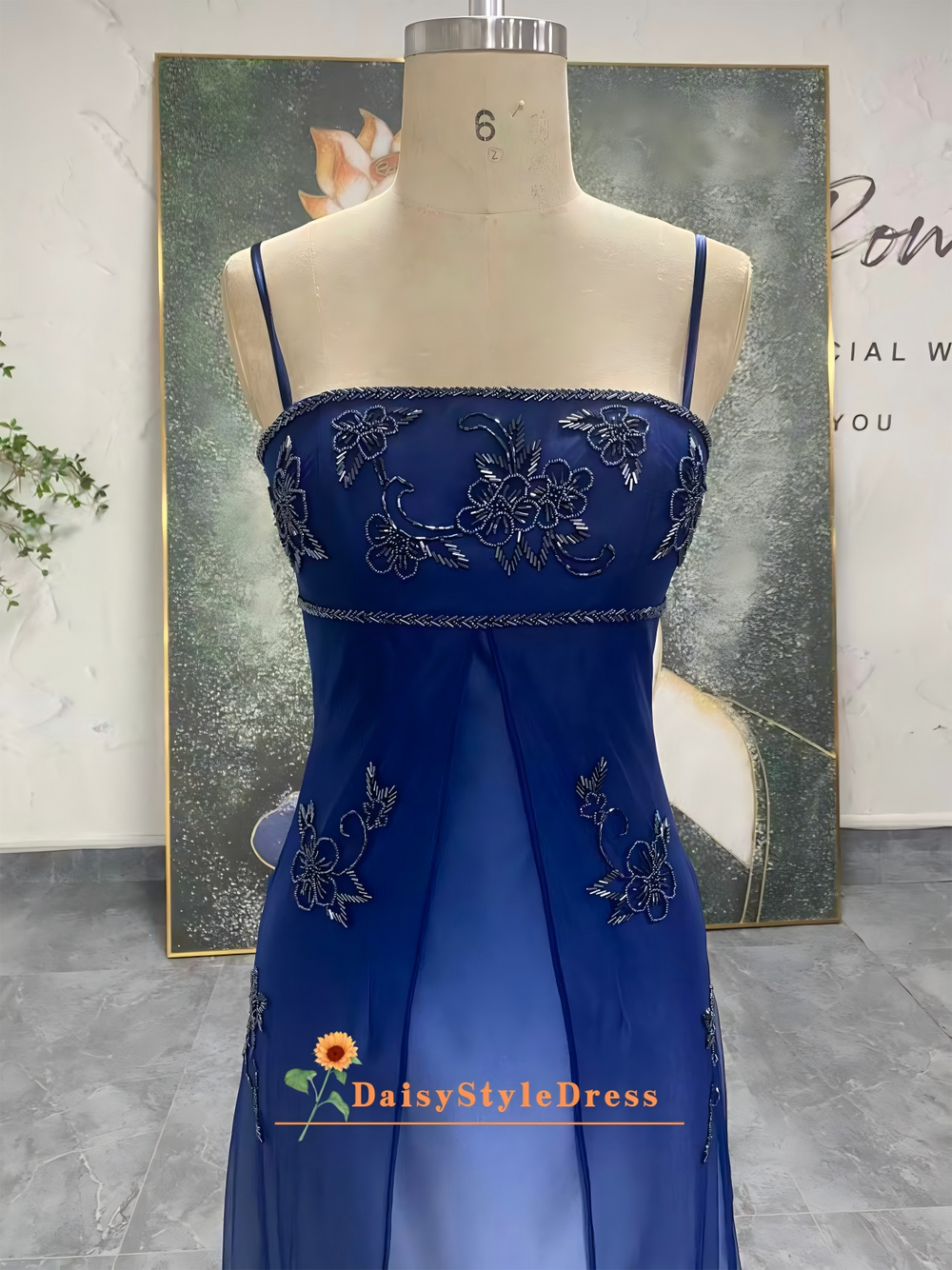 90s Handmade Beaded Prom Dress,Blue Vintage Party Dress