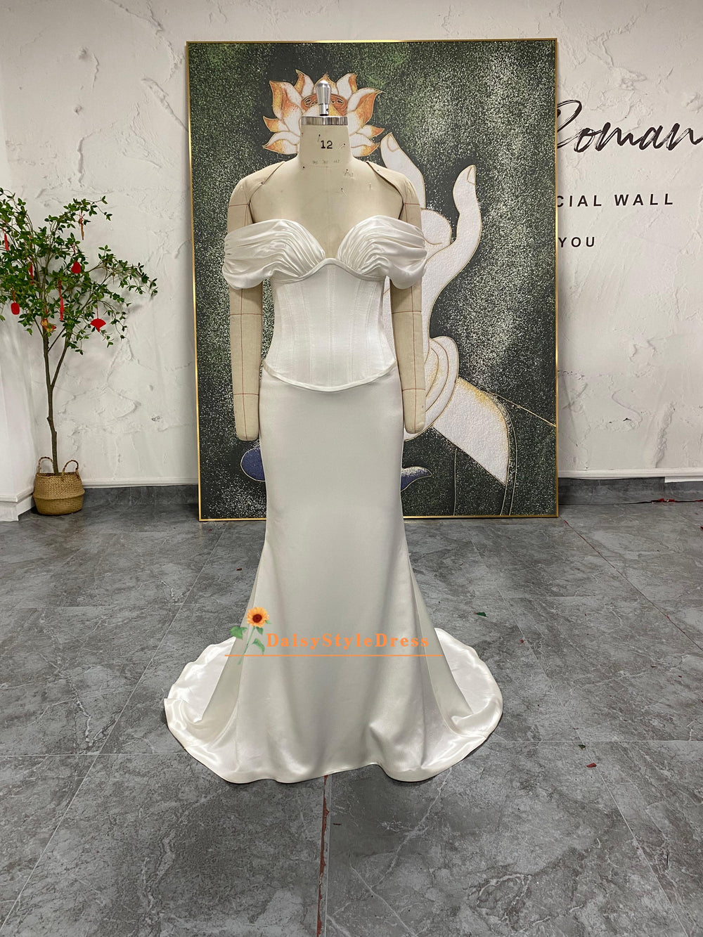 Infomal Mermaid Off-the-Shoulder Sleeve Satin Wedding Dress