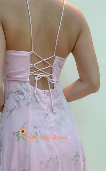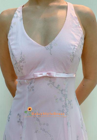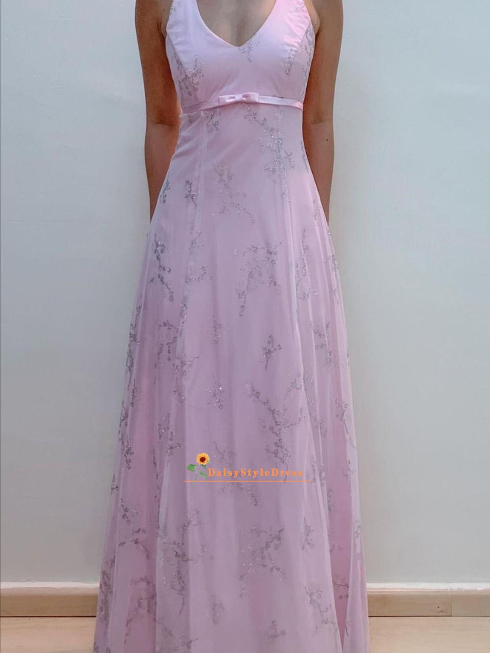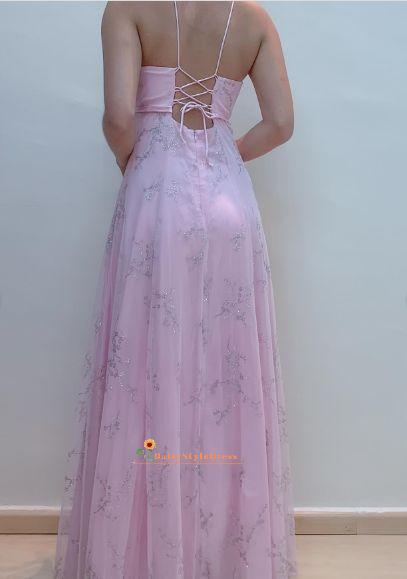 Blush Pink V-Neck A-Line Glitter Tulle Elegant Prom Gown