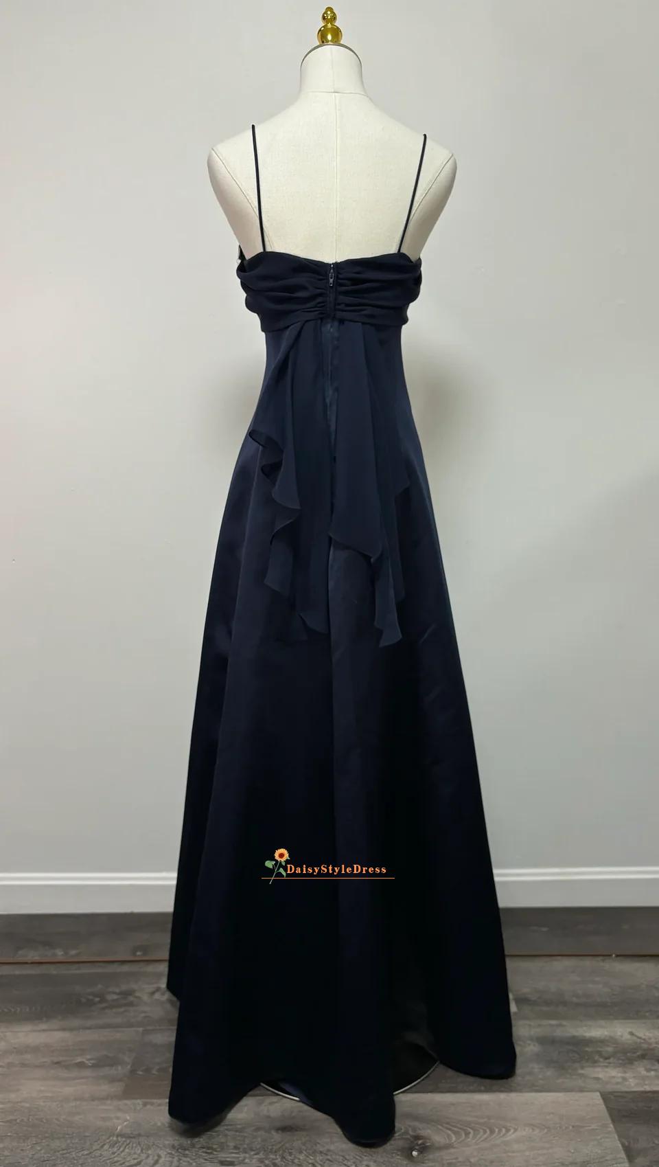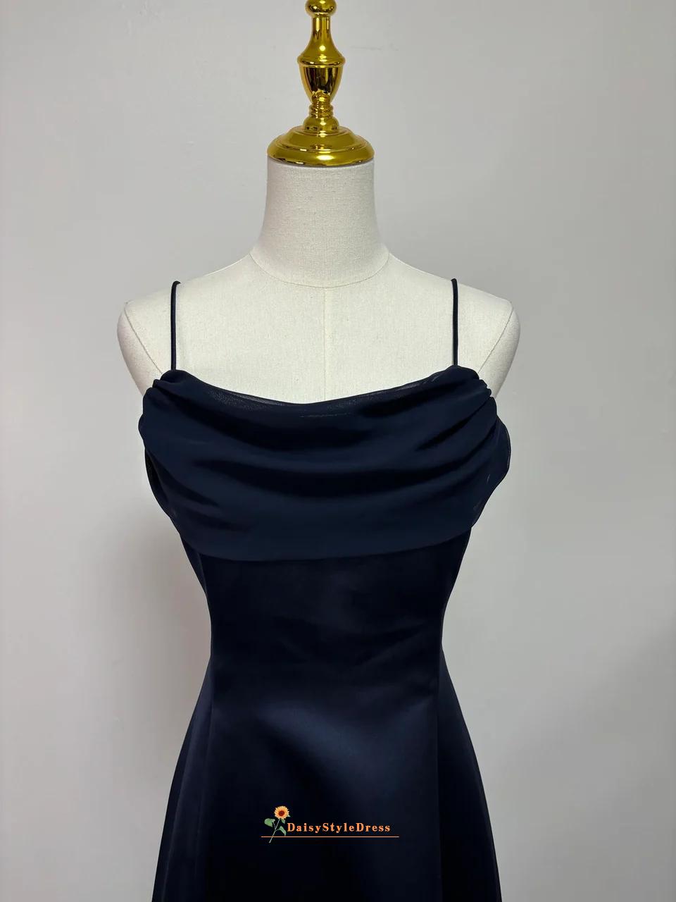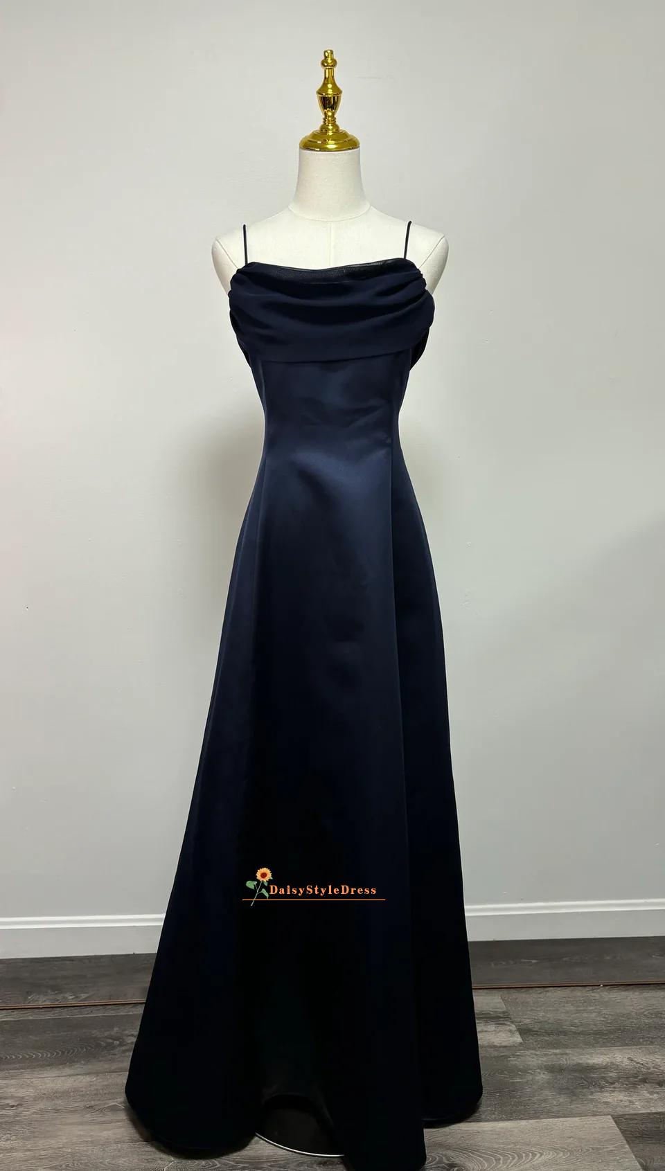 Navy Blue Satin Cowl Neck Maxi Prom Dress, Formal Evening Party Gown