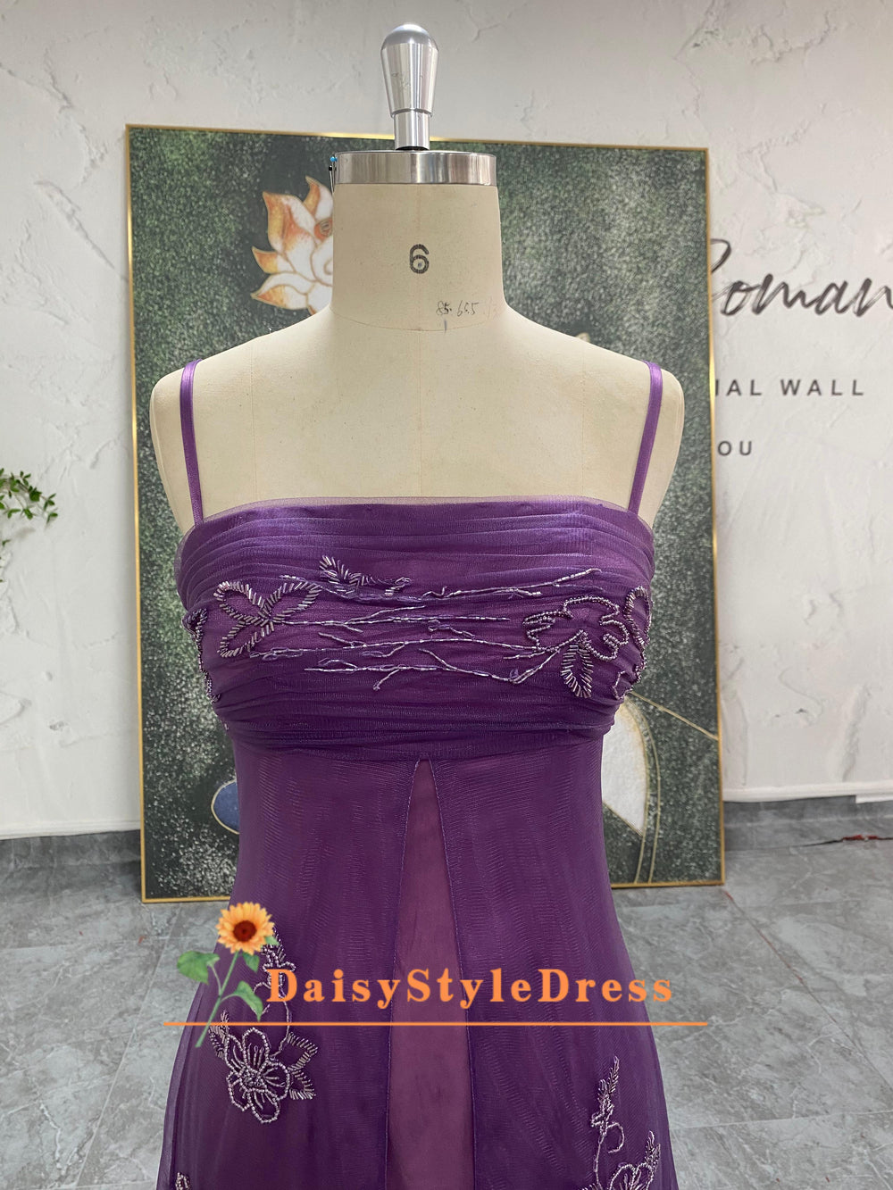 Vintage Beaded Prom Dress,90s Purple Party Dress