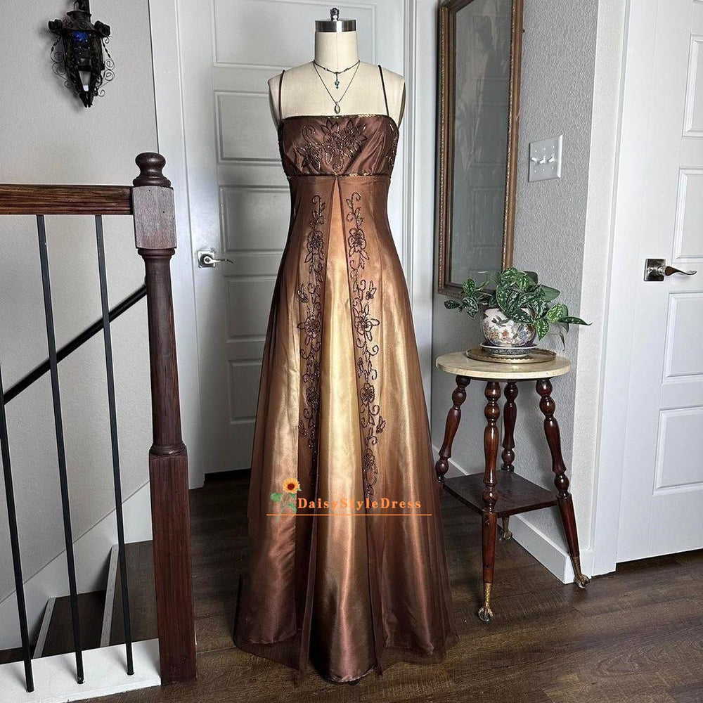 Vintage Brown Prom Dress,2000s Beaded Party Gown